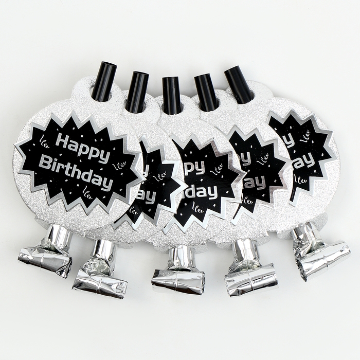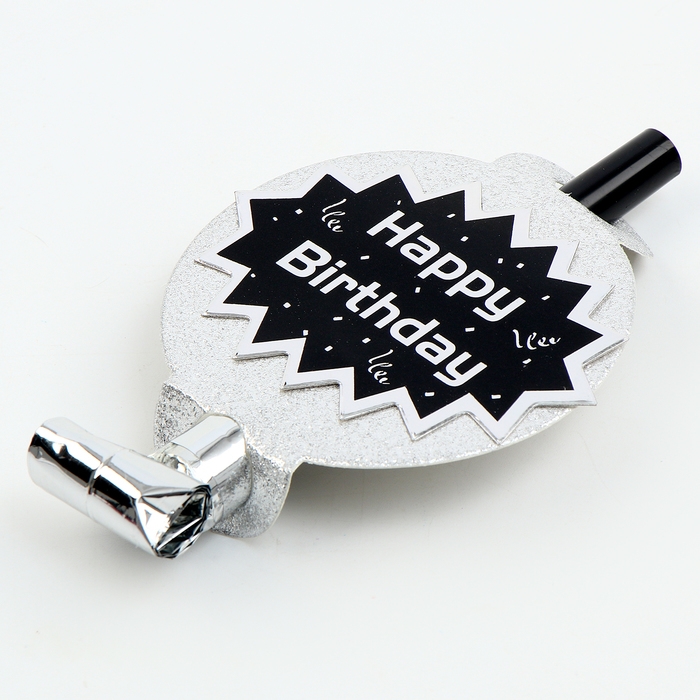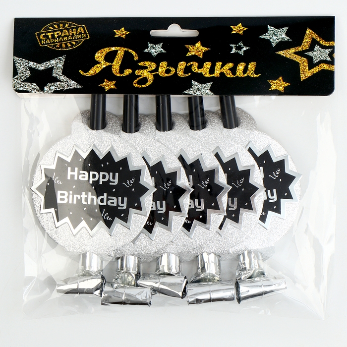 Карнавальный язычок "С днем рождения" набор 5 штук, цвет серебро