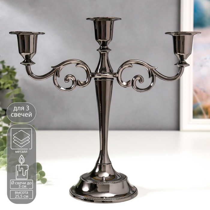 Подсвечник металл на 3 свечи "Лаконичность" цвет чёрный хром 25,5х27х10 см