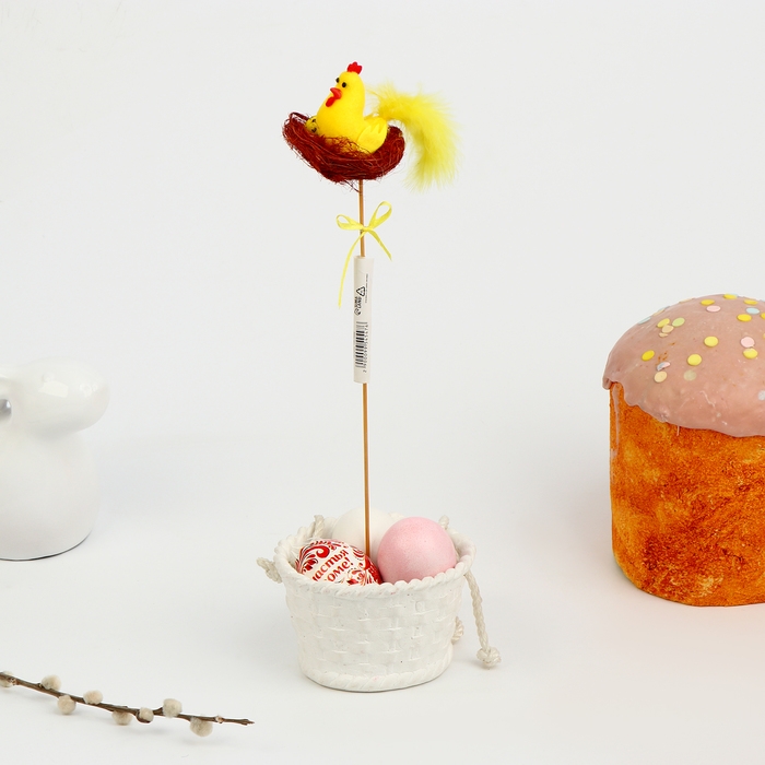 Пасхальный декор на палочке «Петушок», 7 × 13 × 31 см, в гнёздышке