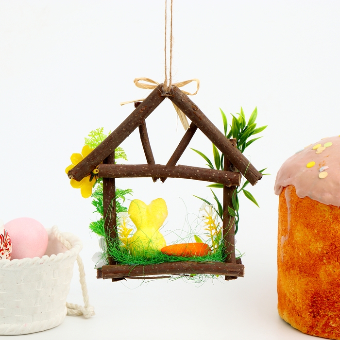 Декоратиная пасхальная подвеска «Зайчик в домике» 4 × 14 × 15,5 см