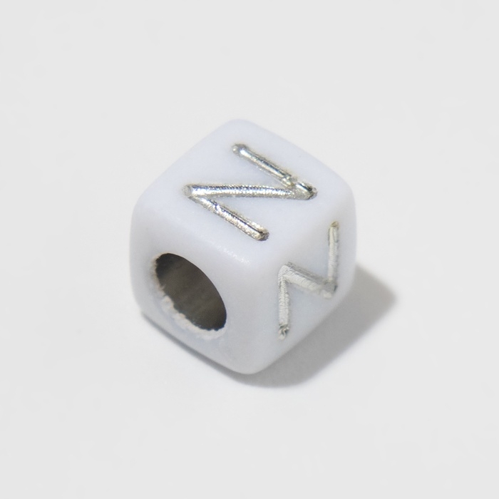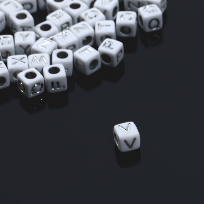 Бусина из акрила «Буквы английские» МИКС, серебристые, кубик 6×6 мм, цвет белый