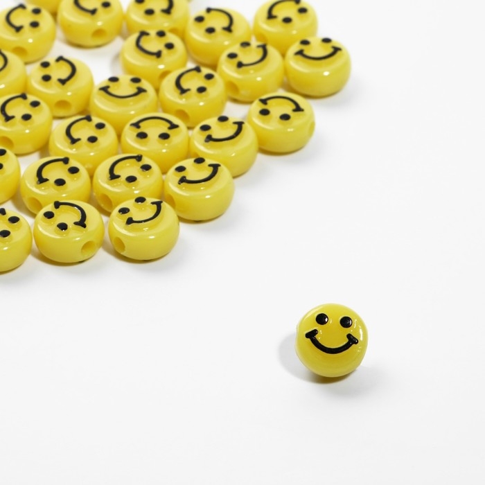 Бусина из акрила «Смайл», 0,9×0,4 см, (набор 10 г), цвет жёлтый