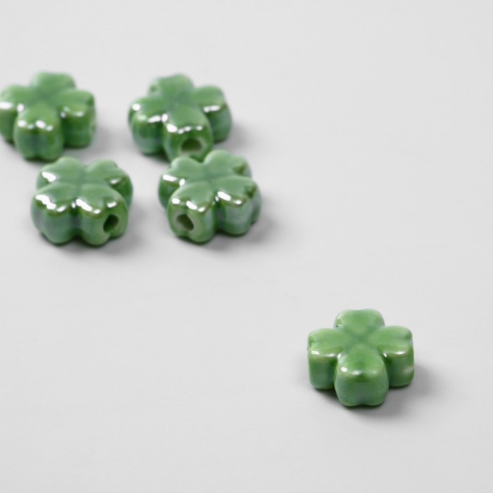 Бусина керамическая «Клевер» четырёхлистный, 1,2×1,2×0,5см, (набор 5 шт.), цвет зелёный