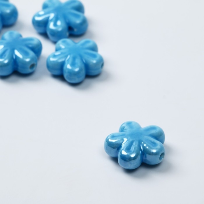 Бусина керамическая «Цветок» пятилистник, 1,75×1,75×0,5см, (набор 5 шт), цвет синий
