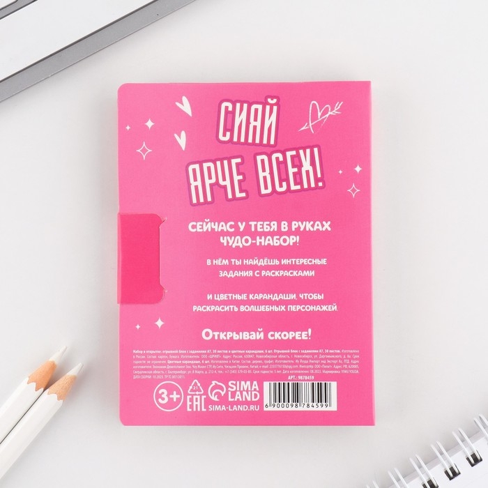 Подарочный набор в открытке: отрывной блок с заданиями и карандаши «Самая яркая»