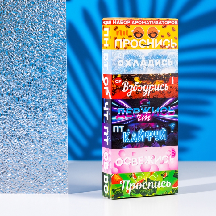 Каждый ароматизатор выполнен из прочного картона, пропитанного высококачественной ароматической эссенцией, и имеет удобную форму, позволяющую установить его в любом месте салона автомобиля – например, на зеркало заднего вида, в дверце сиденья или в бардачке. Благодаря компактным размерам и стильному дизайну, ароматизатор идеально впишется в интерьер любого автомобиля. Такой набор станет отличным выбором для тех, кто хочет разнообразить атмосферу своего авто и наслаждаться приятными ароматами на протяжении долгого времени (каждый ароматизатор действует до 14 дней). Выбирайте свой любимый аромат и наслаждайтесь комфортом и свежестью в вашем автомобиле!