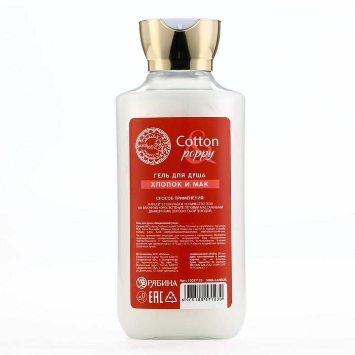Гель для душа, чудесная нежность, 295 мл, аромат хлопка и мака, FLORAL & BEAUTY by URAL LAB