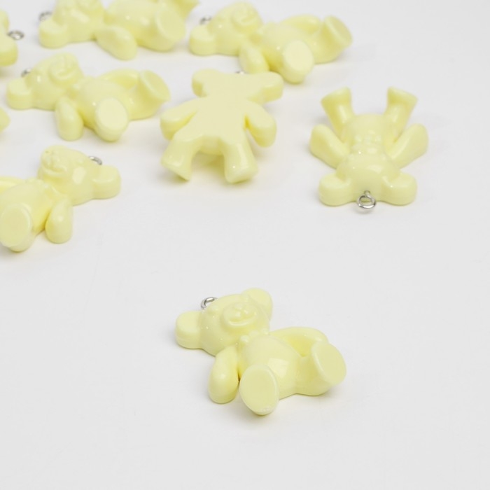 Бусина «Мишка» 3,4×2,4×1 см, (набор 10 шт.), цвет светло-жёлтый