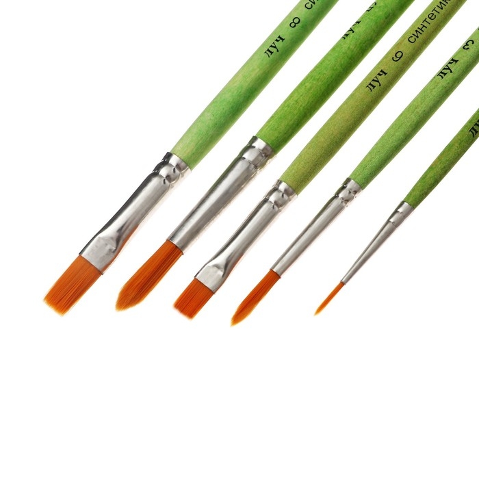Набор кистей синтетика ZOO, круглые (№ 1, 3, 5) и плоские (№ 6, 8)