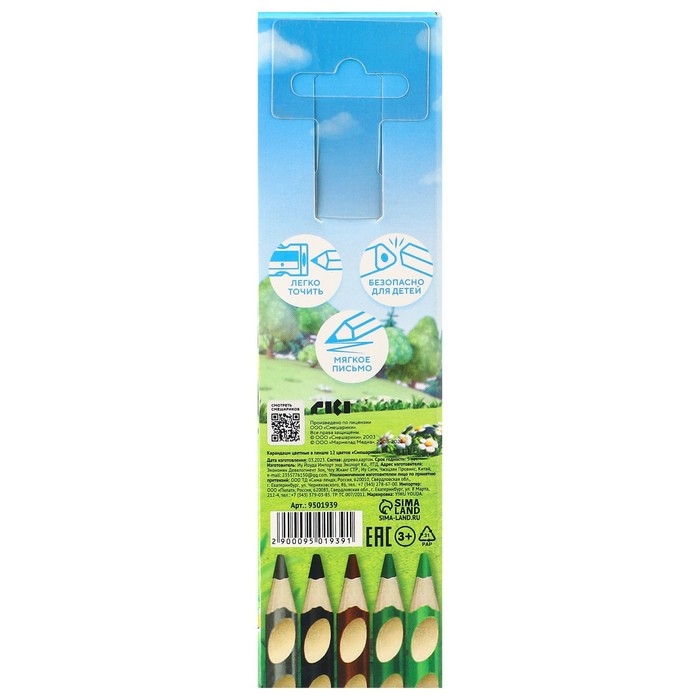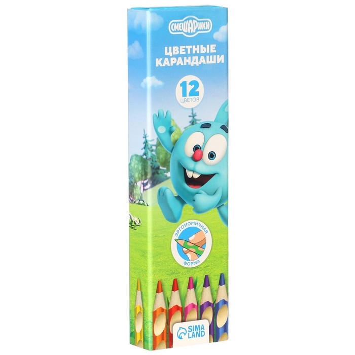 Цветные карандаши, 12 цветов, трехгранные, Смешарики