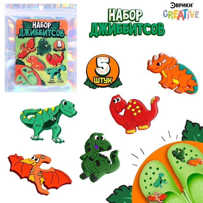 Набор джибитсов «Динозаврики» поможет кастомизировать обувь ребёнка и сделать его сабо уникальными. Джибитсы торговой марки «Эврики» подходят не только для обуви Crocs, но и для обуви других производителей.