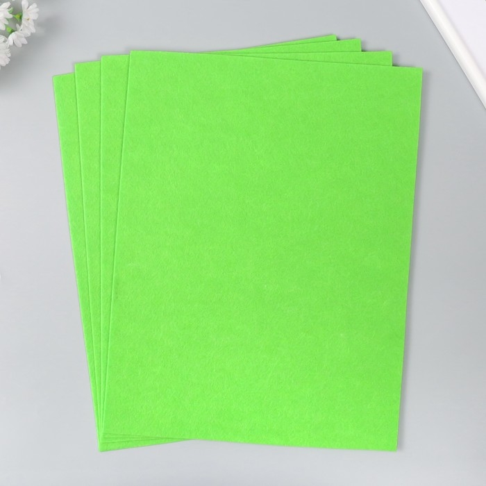 Фетр 2 мм "Неоново-зелёный" набор 4 листа 30х40 см
