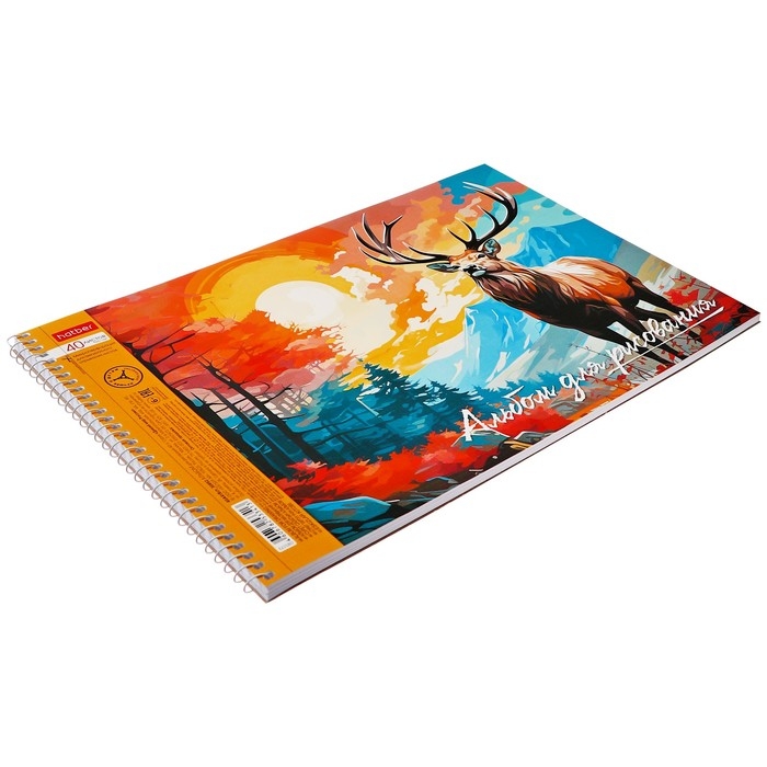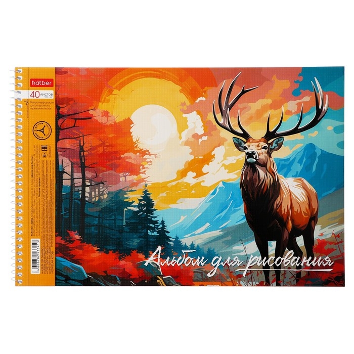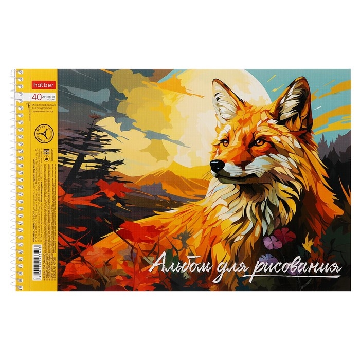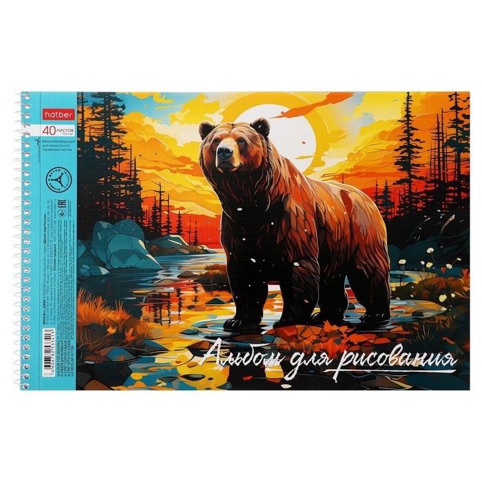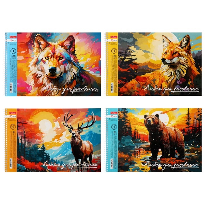 Альбом для рисования А4, 40 листов на гребне "Дикий мир России", обложка мелованный картон, тиснение, перфорация на отрыв, блок 100 г/м2, МИКС