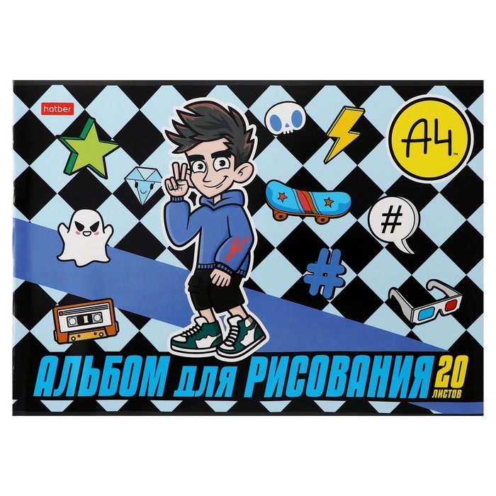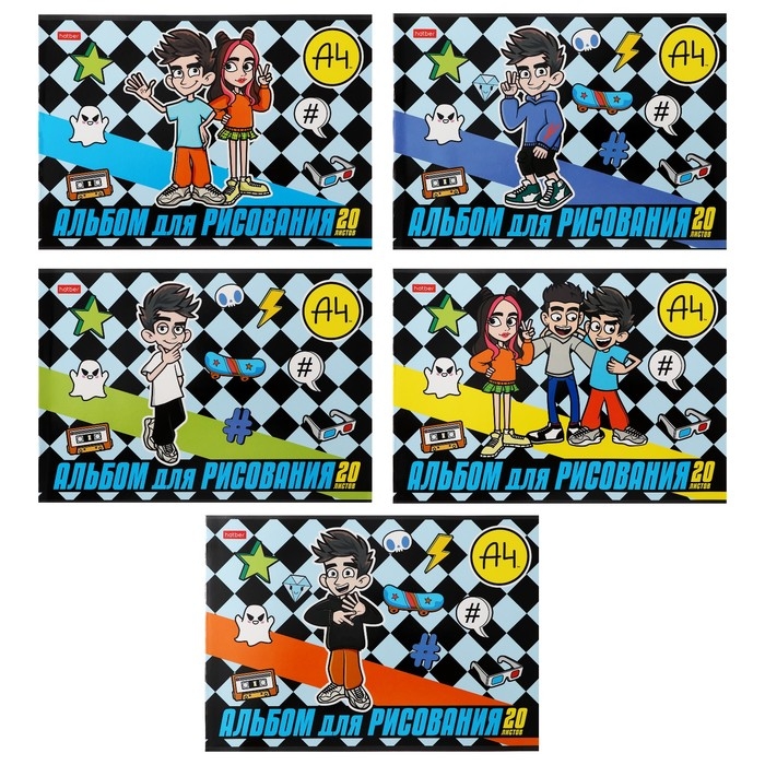 Альбом для рисования А4, 20 листов "Влад А4", обложка мелованный картон, блок 100 г/м2, МИКС 5 видов