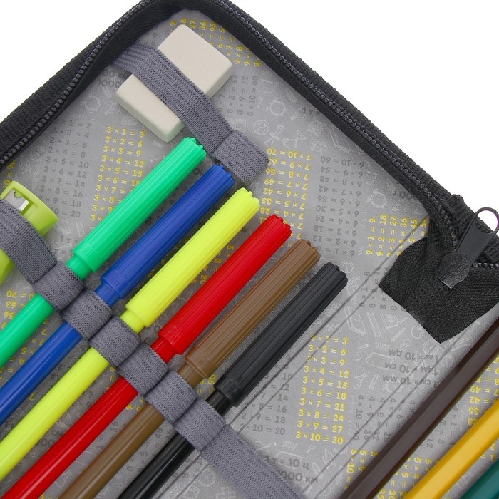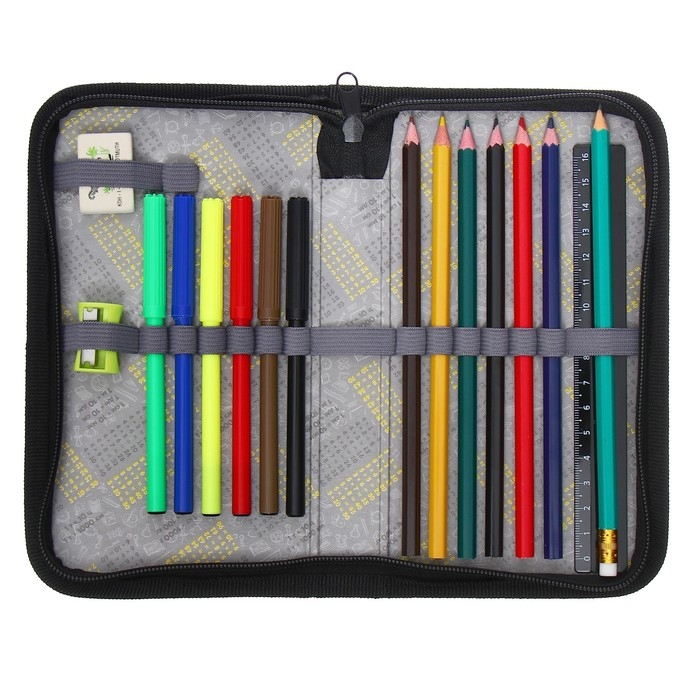Пенал 1 секция, 115 х 205 мм, с наполнением 16 предметов, Calligrata "School" ламинированный картон, 30П26/set