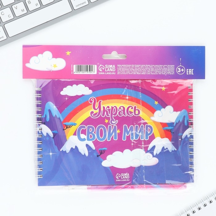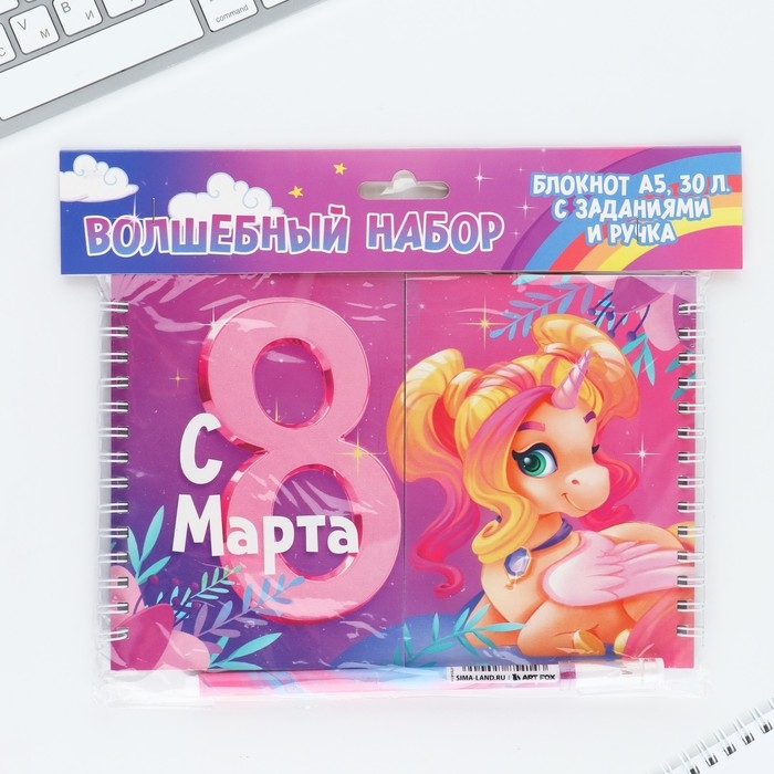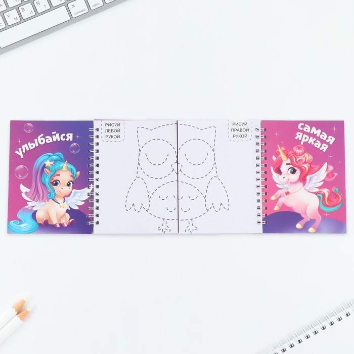 Подарочный набор двойной блокнот с заданиями и ручка «Волшебные единороги»
