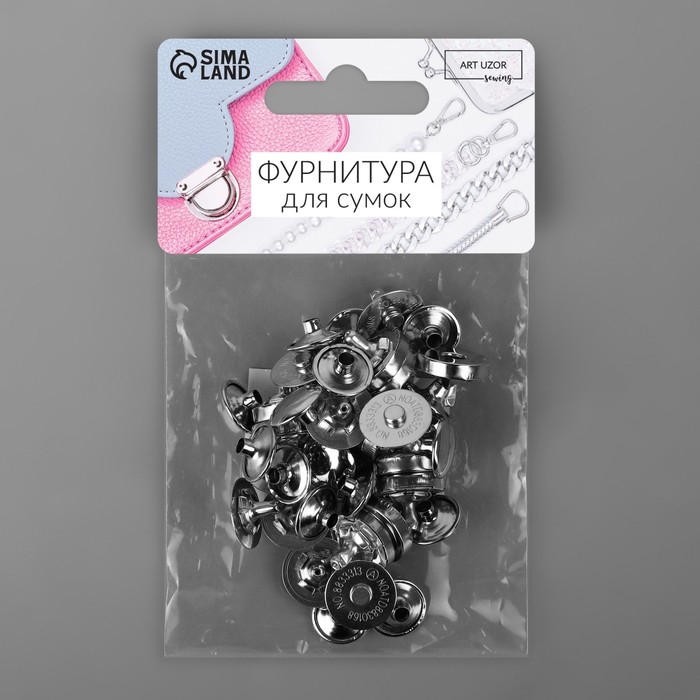 Кнопки магнитные, d = 18 мм, 10 шт, цвет серебряный