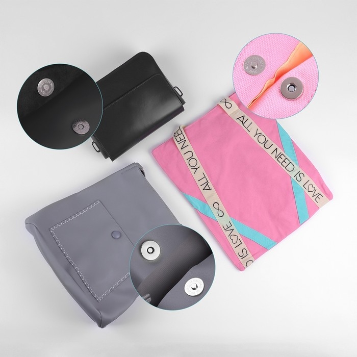 Магнитные установочные кнопки подойдут для работы с материалами разной плотности. Они открываются без особых усилий. Кнопки используются в качестве фурнитуры для плащей, ветровок, сумок, кошельков и других изделий.