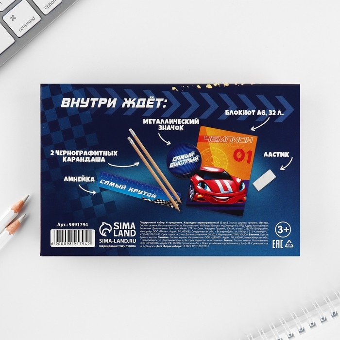 Блокнот, Значок, Карандаши, Ластик, Линейка