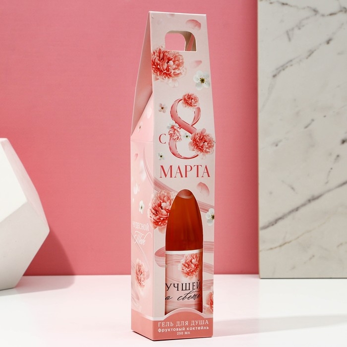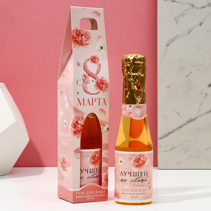Гель для душа во флаконе шампанского «С 8 Марта!», 250 мл, аромат фруктового коктейля, ЧИСТОЕ СЧАСТЬЕ