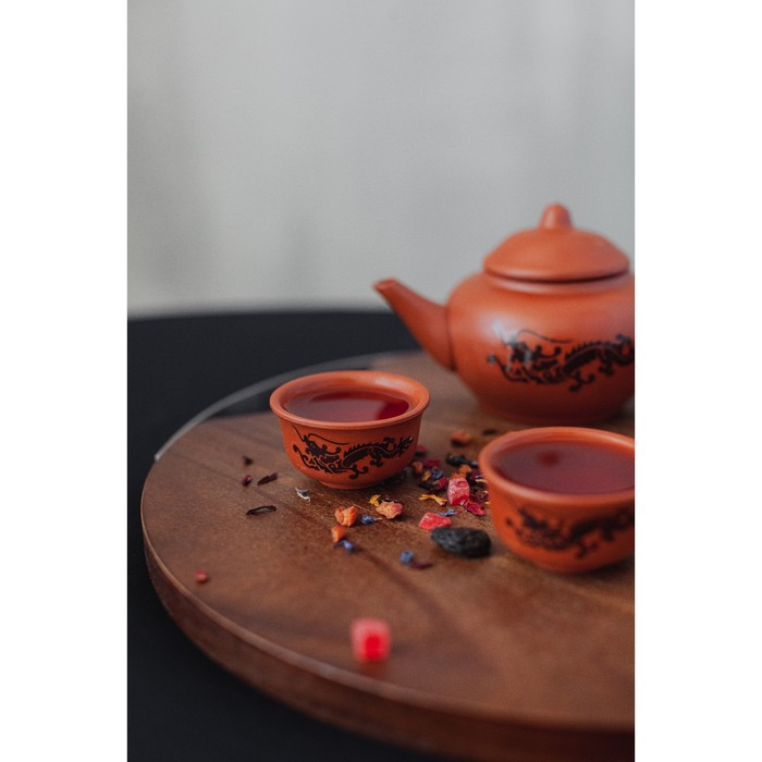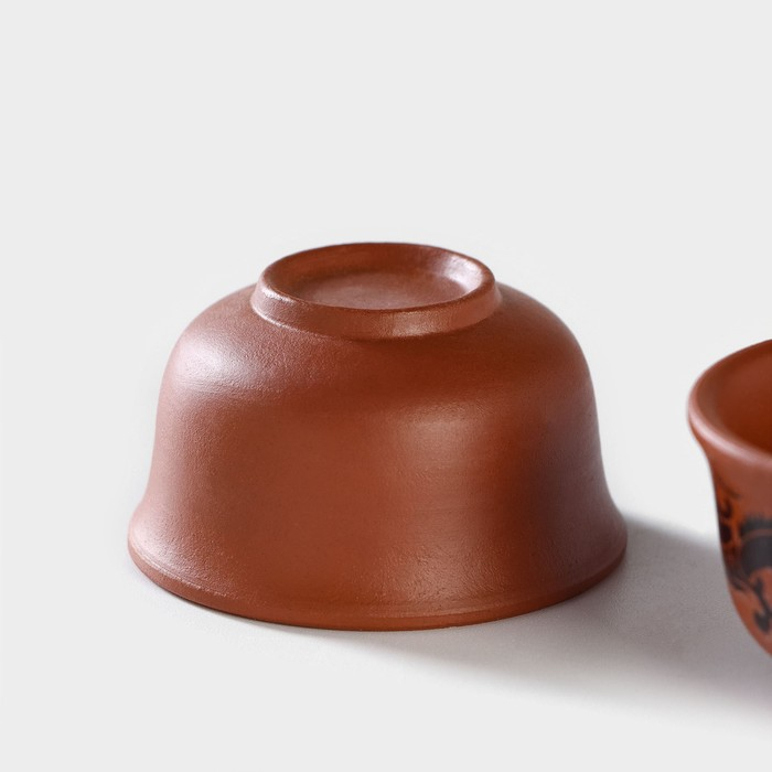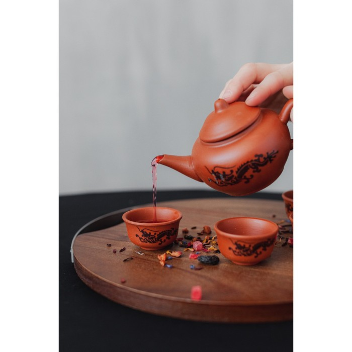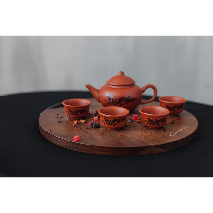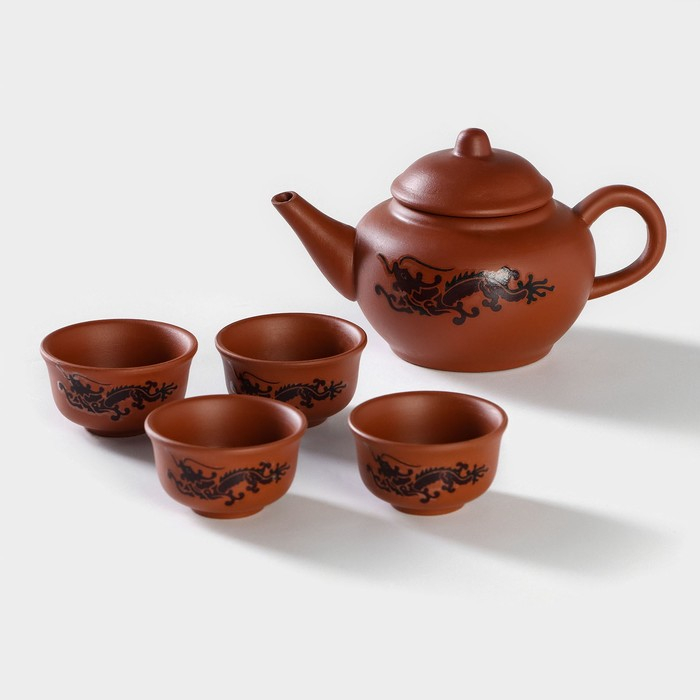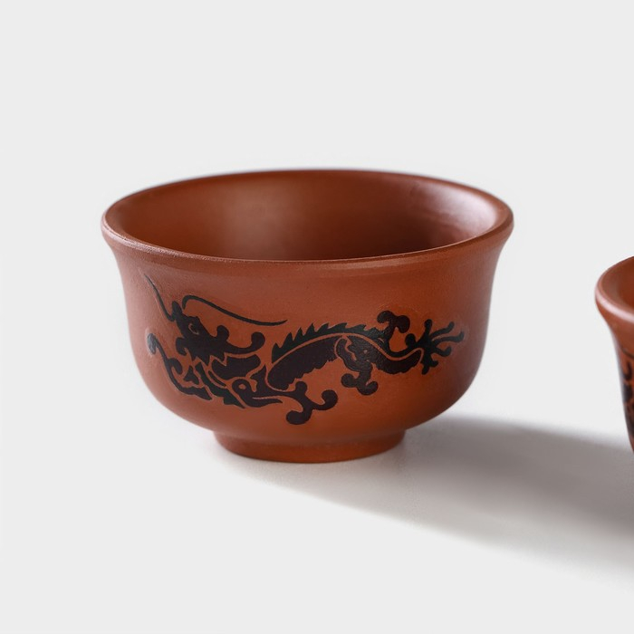 Набор для чайной церемонии керамический «Дракон», 5 предметов: 4 пиалы 25 мл, чайник 200 мл, цвет коричневый