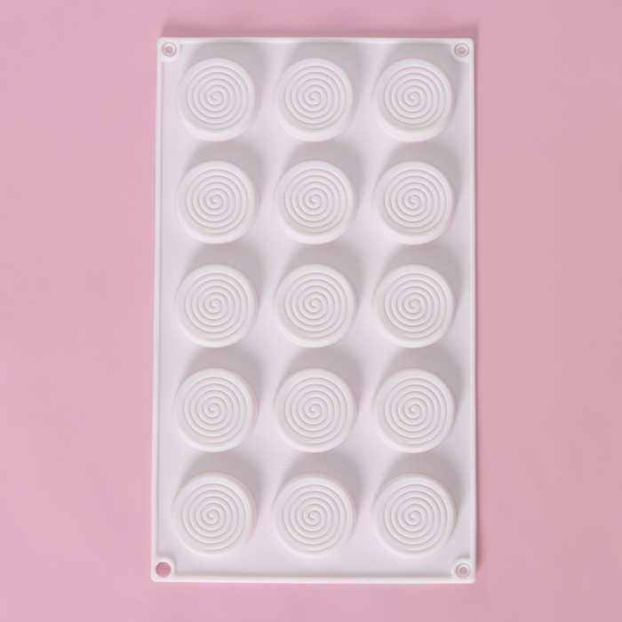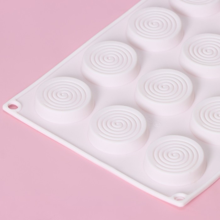 Форма для конфет и шоколада Доляна «Гипноз», силикон, 29×17×1,1 см, 15 ячеек (d=4,2 см), цвет белый