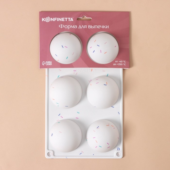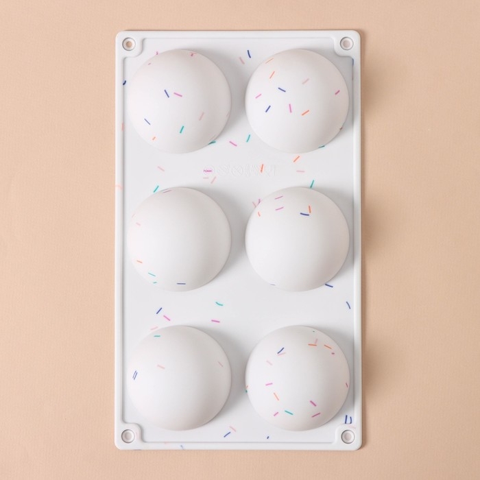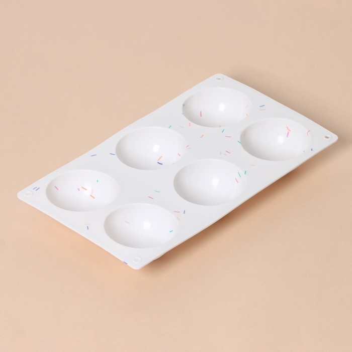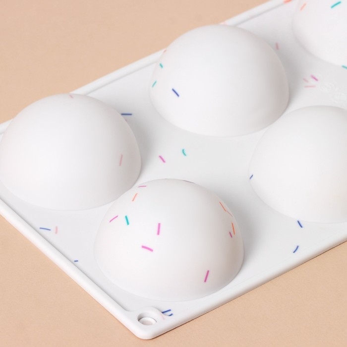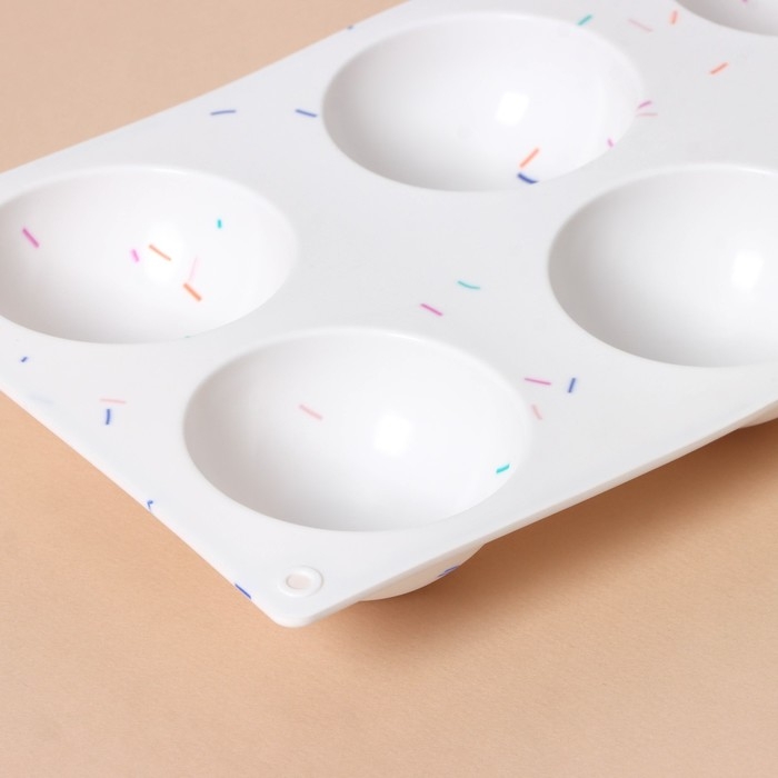 Форма для выпечки KONFINETTA «Фигуры. Полусфера», силикон, 27,8×16,3×3,4 см, 6 ячеек (d=6,7 см), цвет белый