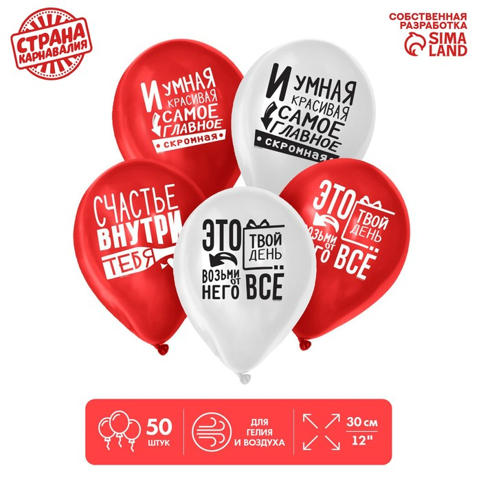 Воздушный шар латексный 12" «23 Февраля», забавный, 50 шт.