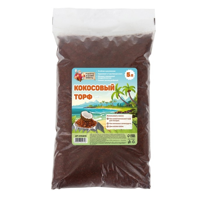 Кокосовый торф "Рецепты Дедушки Никиты", 5 л