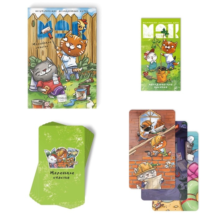 Колода метафорических ассоциативных карт «Маленькое счастье» содержит простые и понятные картинки, связанные с темой радости и счастья обычной жизни.