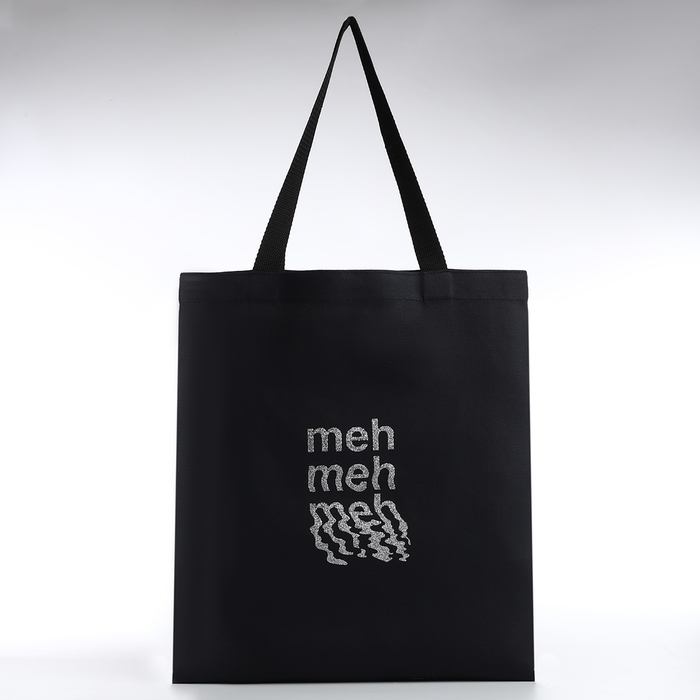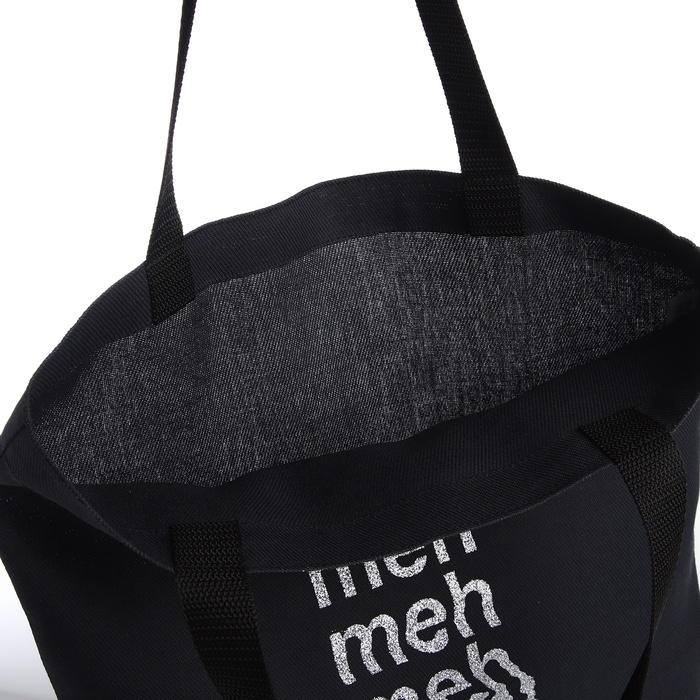 Шопер Meh 35х0,5х40, принт с блестками, без подклада, чёрный