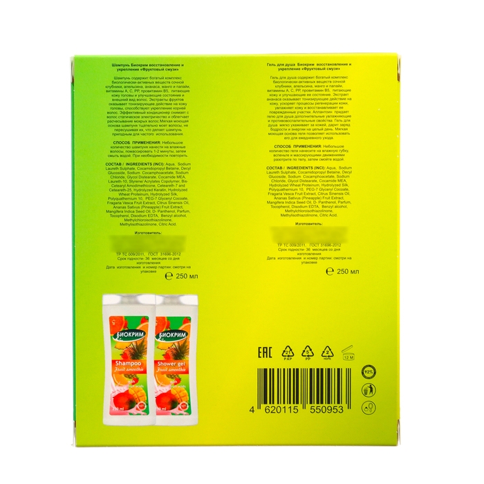 Подарочный набор косметики женский "Фруктовый смузи": шампунь, 250 мл + гель для душа, 250 мл