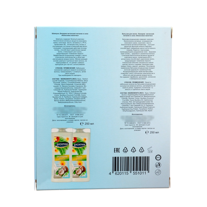 Подарочный набор косметики женский "Кокосовое молочко": шампунь, 250 мл + бальзам, 250 мл