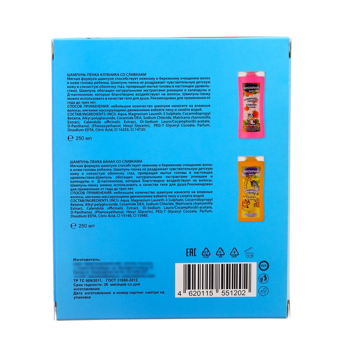 Подарочный набор косметики детский Биокрим: шампунь-пенка, 250 мл + шампунь-пенка, 250 мл