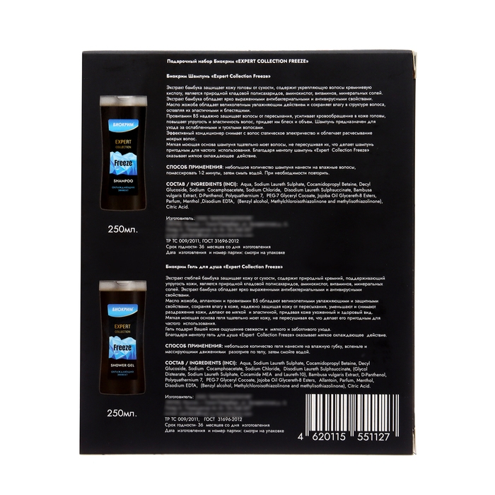 Подарочный набор косметики мужской Expert Collection Freeze: шампунь, 250мл + гель для душа, 250мл