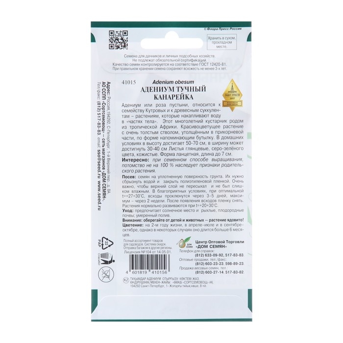 Семена цветов Адениум тучный "Канарейка", 3 шт