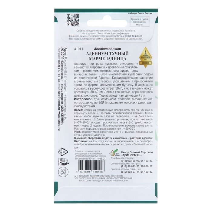 Семена цветов Адениум тучный "Мармеладница", 3 шт