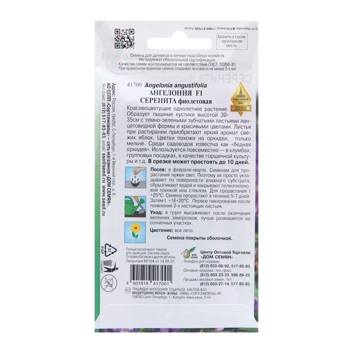 Семена цветов Ангелония "Серенита F1 фиолетовая", 3 шт