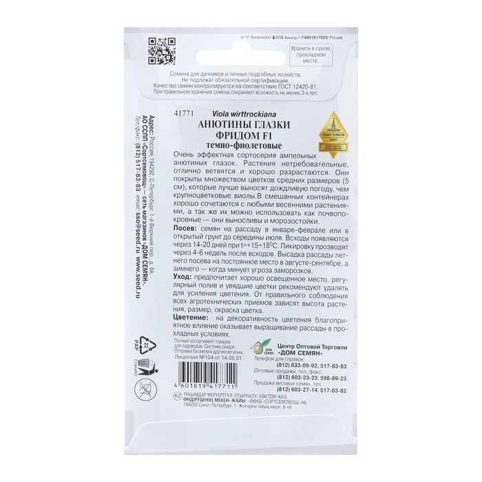 Семена цветов Анютины глазки "Ампир", F2, серия "Русский размер", 12 шт.