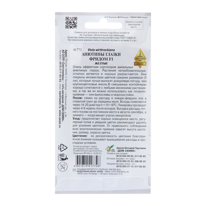 Семена цветов Анютины глазки "Ампир", F2, серия "Русский размер", 12 шт.