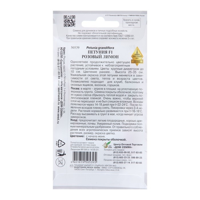 Семена цветов Петуния "Розовый лимон кр/цвет", 7 шт