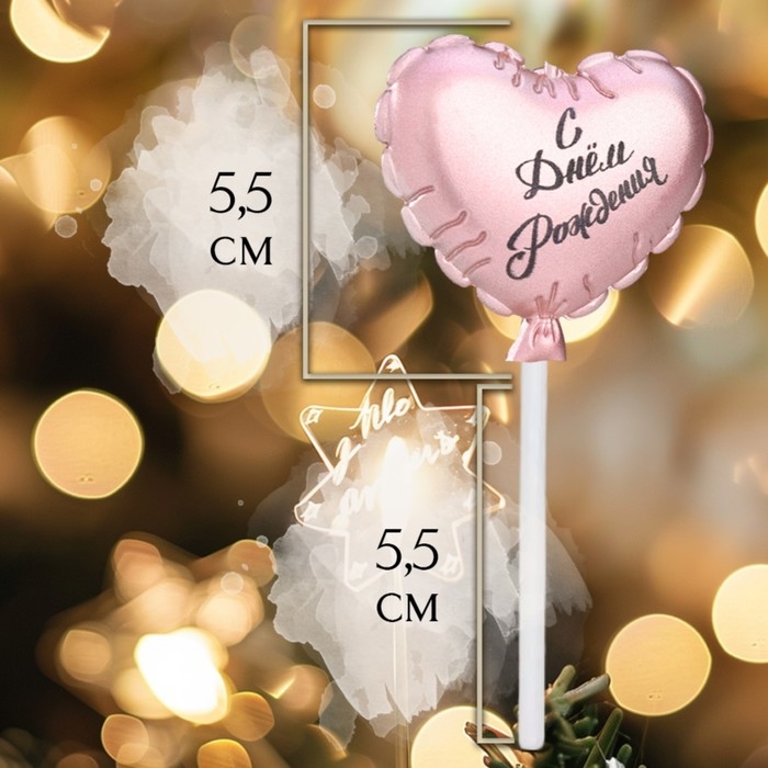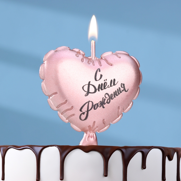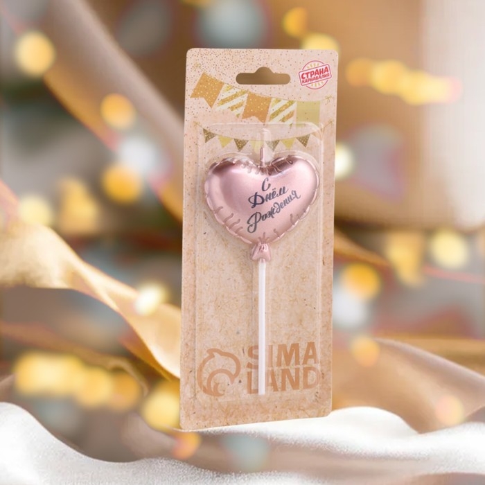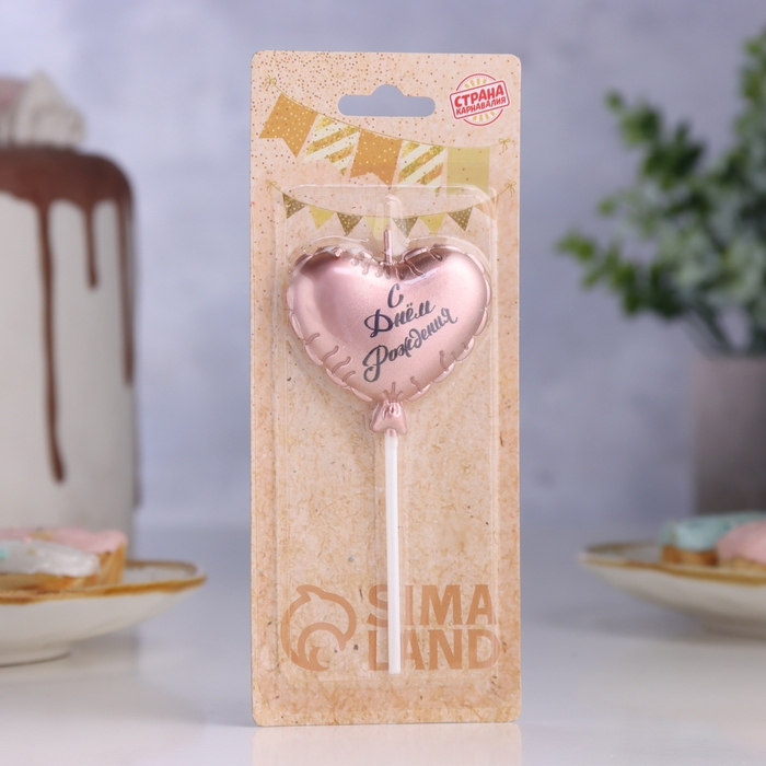 Свеча в торт "Воздушный шарик. Сердечко", 5,5 см. розовое золото