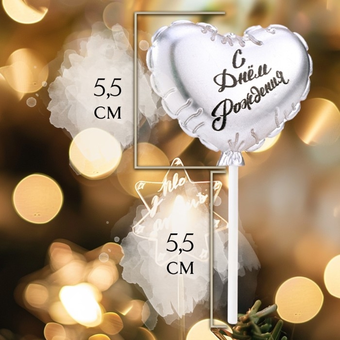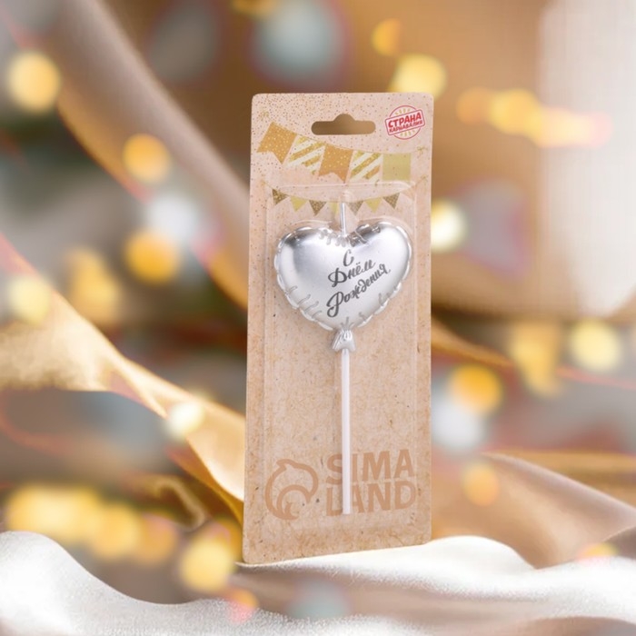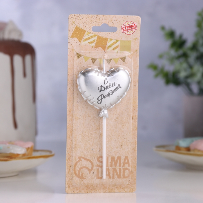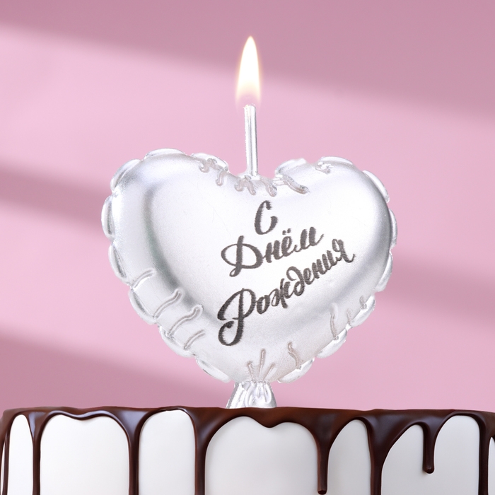 Свеча в торт "Воздушный шарик. Сердечко", 5,5 см. серебро