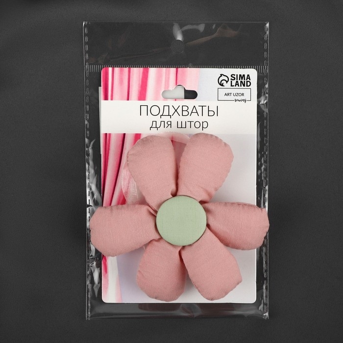 Подхват для штор «Цветочек», d = 10 см, цвет розовый/зелёный
