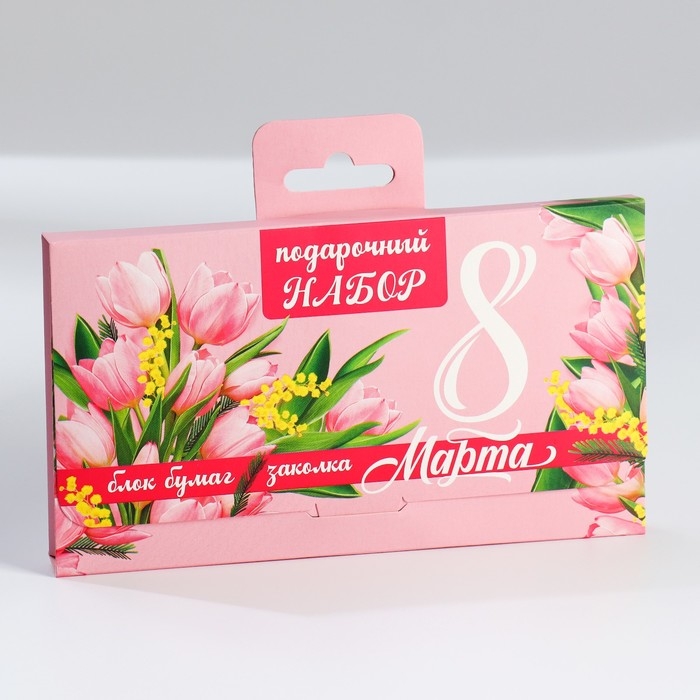 Подарочный набор в чемоданчике: заколка и блок листов « 8 марта»