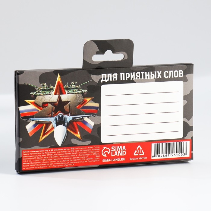 Подарочный набор в чемоданчике: тату и блок листов «23 февраля»
