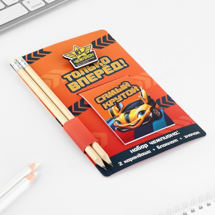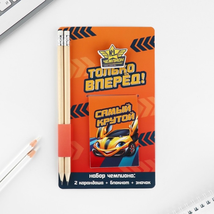 Подарочный набор блокнот, карандаши (2 шт) и значок «Только вперед»
