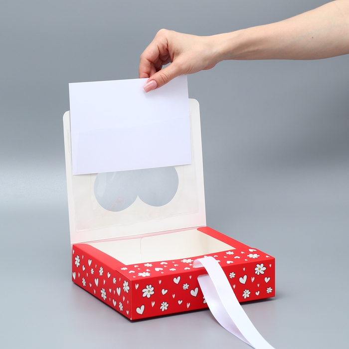 Коробка складная, крышка-дно, "Present", 21 х 15 х 7 см с окном