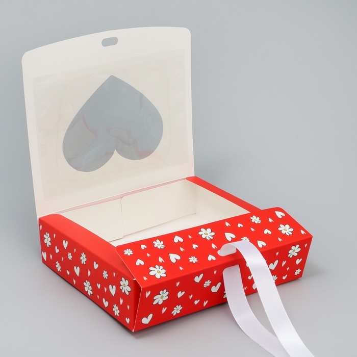Коробка складная, крышка-дно, "Цветочки", 24 х 17 х 8 см с окном
