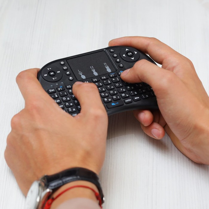 Мини-клавиатура LuazON подойдёт для подключения к телевизору или к телефону. Компактный размер обеспечивает возможность брать клавиатуру с собой в поездку для подключения к ноутбуку. Встроенный тачпад с удобным управлением позволяет полностью отказаться от компьютерной мыши. Касание одного пальца иммитирует нажатие левой кнопки мыши, три пальца являются альтернативой правой кнопки мыши, а два пальца используются для перемотки, вместо колёсика. Двойная раскладка позволяет комфортно печатать текст на русском и английском языке.